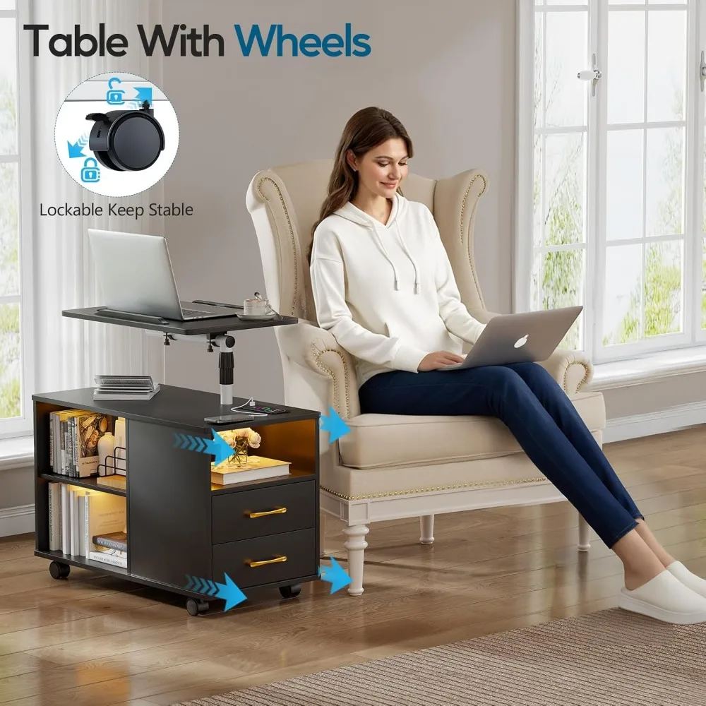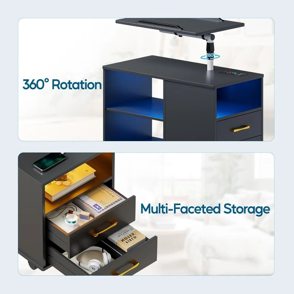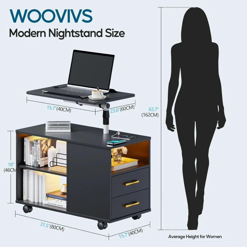 - 【Durable and Stable】: The nightstand with charging station is made of steel pipe frame and artificial wood, equipped with a heavy-duty base, which is durable and stable. Slow free movement can also ensure the stability of the desktop